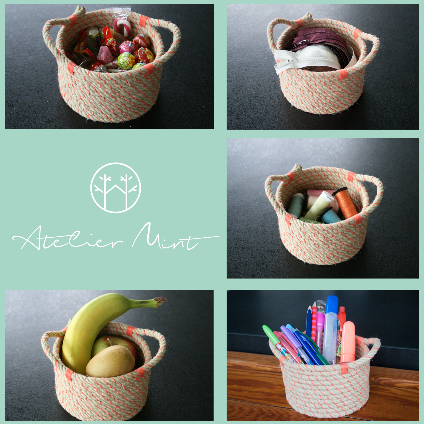 Met een klein pakket maak je een mand met referentiedoorsnede 14cm en hoogte 7cm.